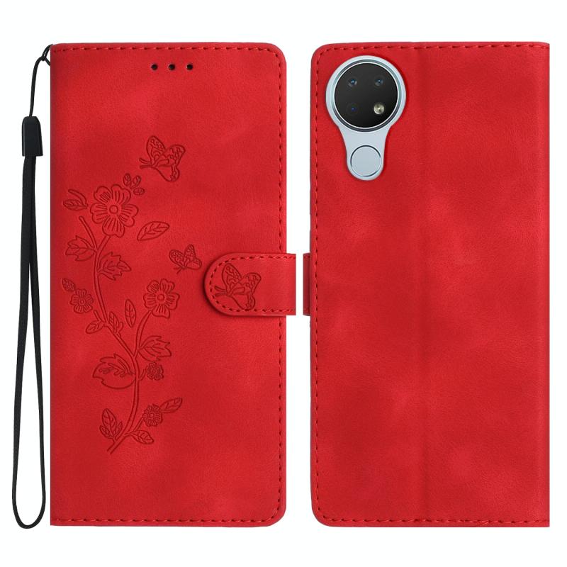 For Nokia 6.2 / 7.2 Flower Butterfly Embossing Pattern Leather Phone Case(Red)