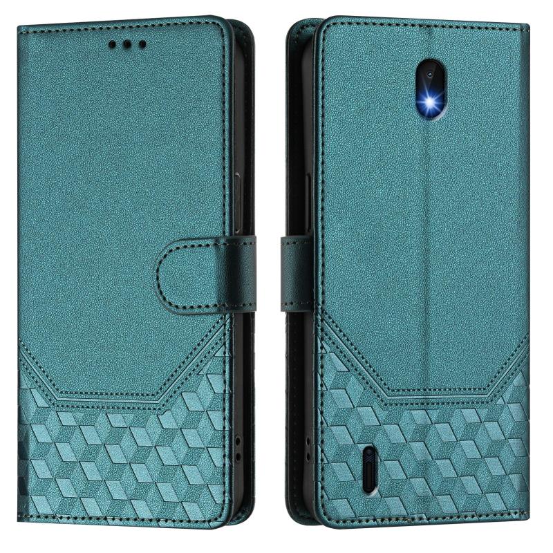 For Nokia C01 Plus / C1 2nd Edition Honeycomb Embossing RFID Leather Phone Case(Peacock Green)