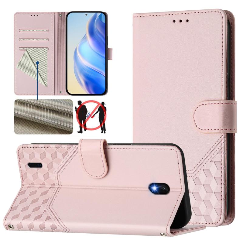 For Nokia C01 Plus / C1 2nd Edition Honeycomb Embossing RFID Leather Phone Case(Pink)