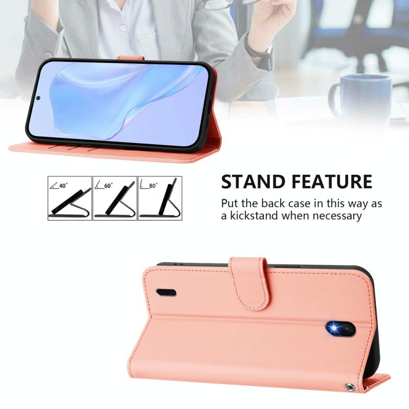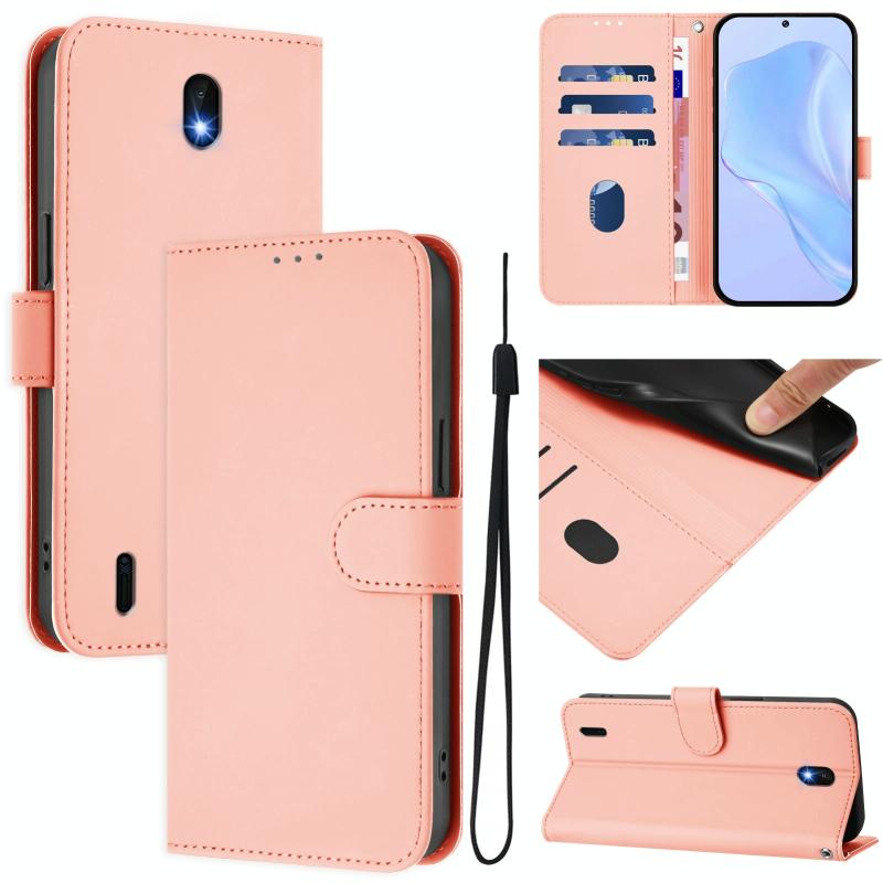 For Nokia C01 Plus / C1 2nd Edition Skin Feel Solid Color Leather Phone Case with Lanyard(Pink)