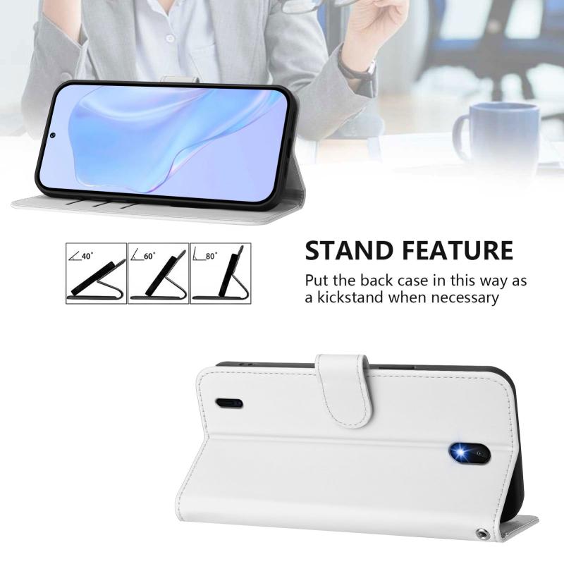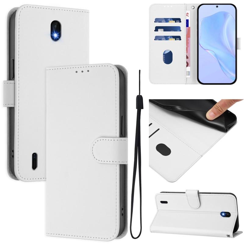 For Nokia C01 Plus / C1 2nd Edition Skin Feel Solid Color Leather Phone Case with Lanyard(White)