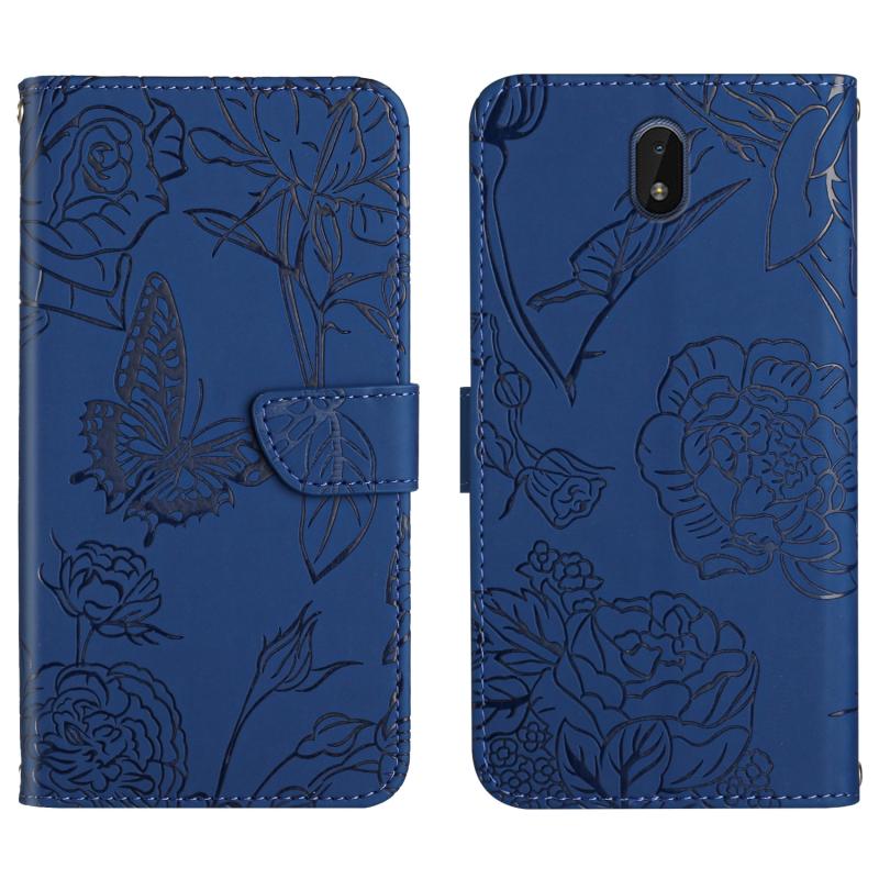 For Nokia C01 Plus Skin Feel Butterfly Peony Embossed Leather Phone Case(Blue)