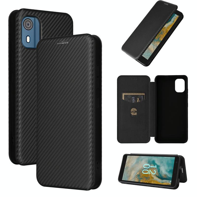 For Nokia C02 Carbon Fiber Texture Flip Leather Phone Case(Black)
