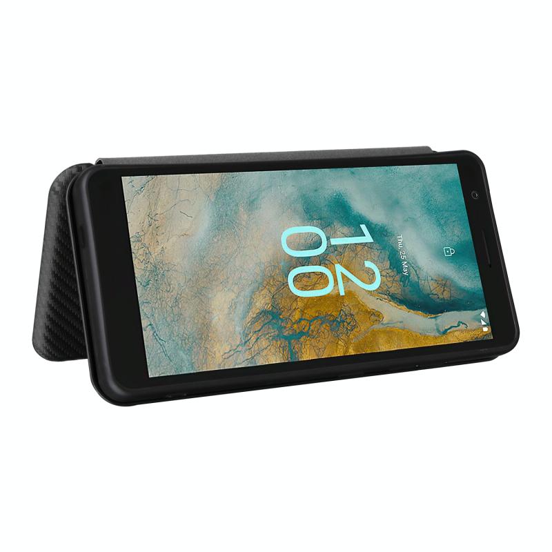 For Nokia C02 Carbon Fiber Texture Flip Leather Phone Case(Blue)