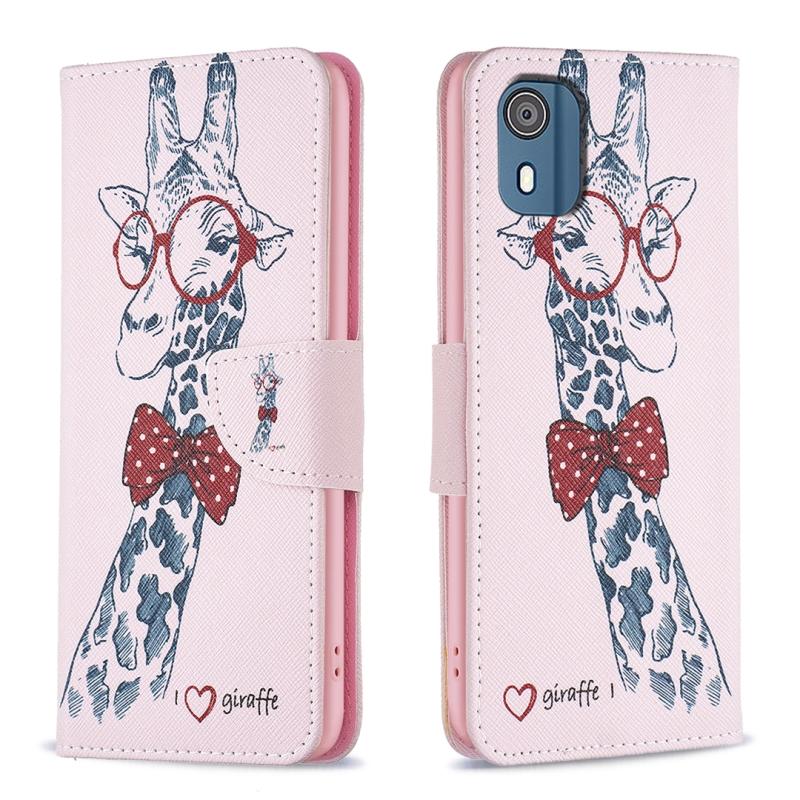 For Nokia C02 Colored Drawing Pattern Leather Phone Case(Giraffe)
