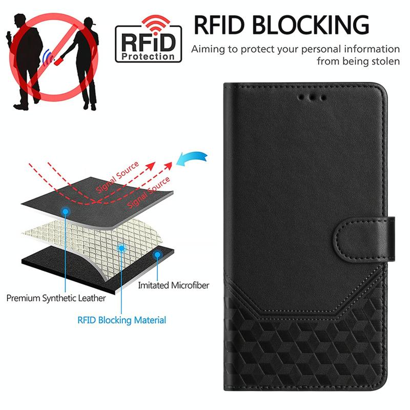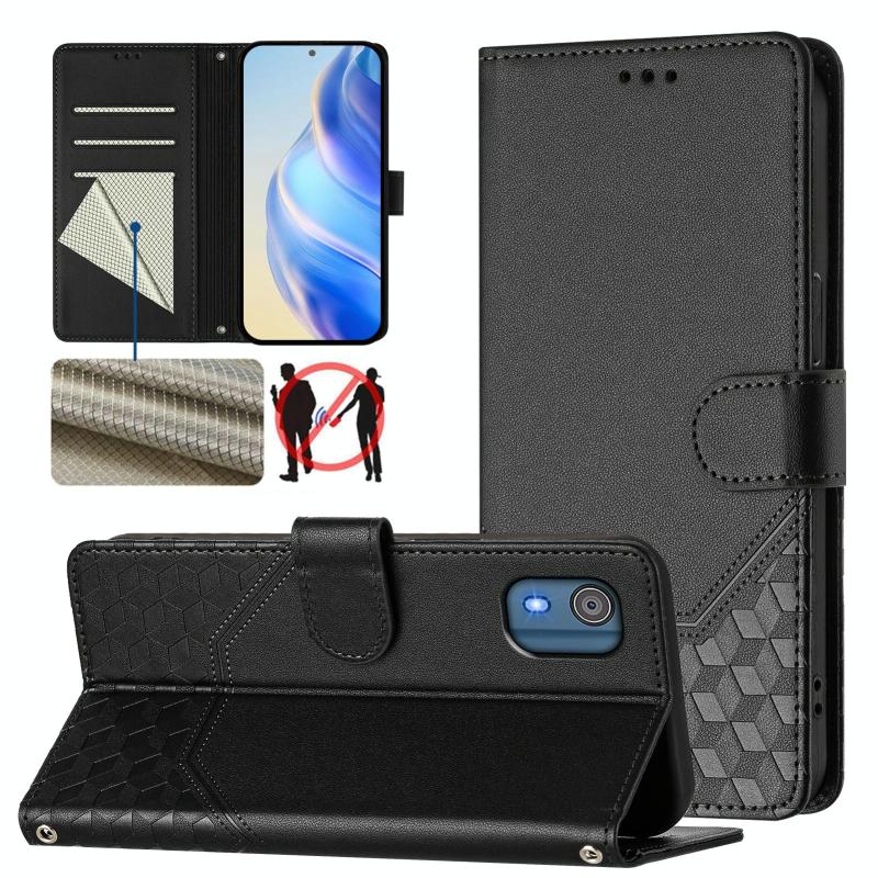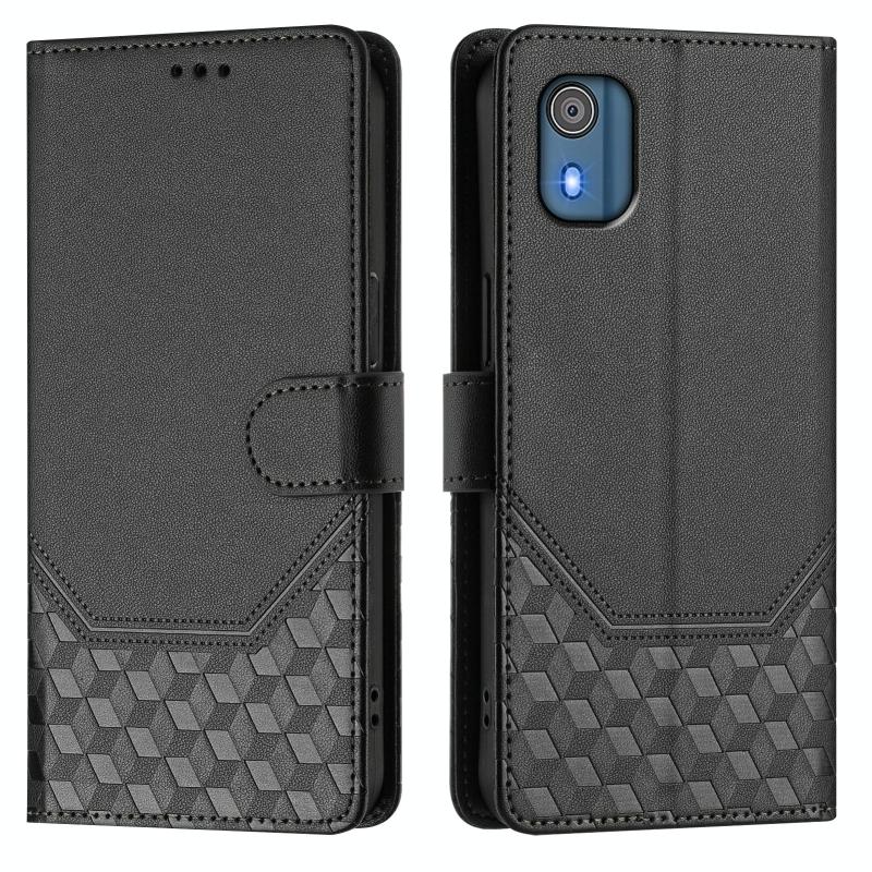 For Nokia C02 Honeycomb Embossing RFID Leather Phone Case(Black)