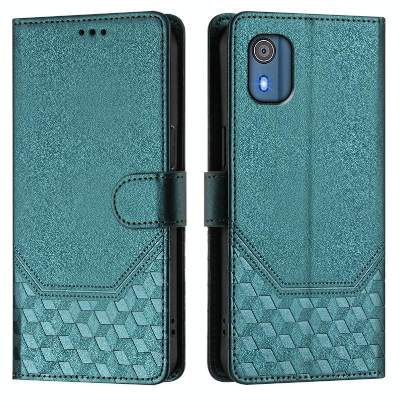 For Nokia C02 Honeycomb Embossing RFID Leather Phone Case(Peacock Green)