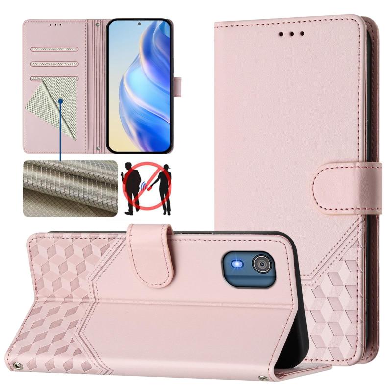 For Nokia C02 Honeycomb Embossing RFID Leather Phone Case(Pink)
