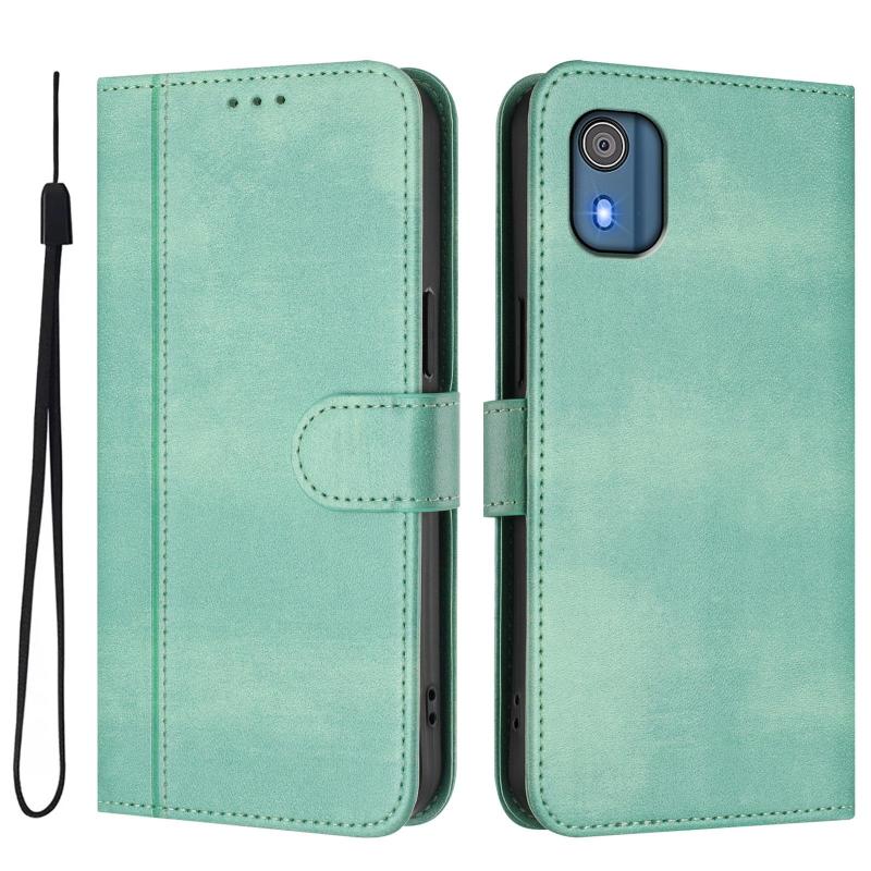 For Nokia C02 Line Splicing Buckle Retro Leather Phone Case(Mint Green)