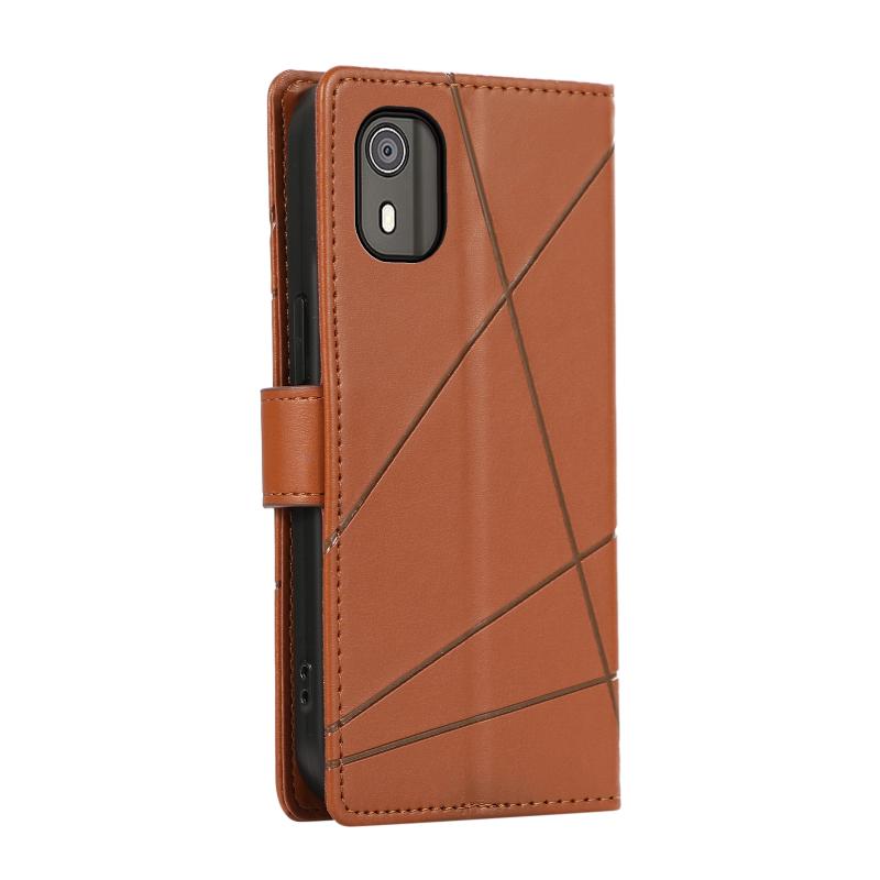 For Nokia C02 PU Genuine Leather Texture Embossed Line Phone Case(Brown)