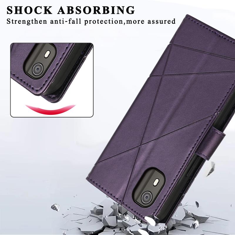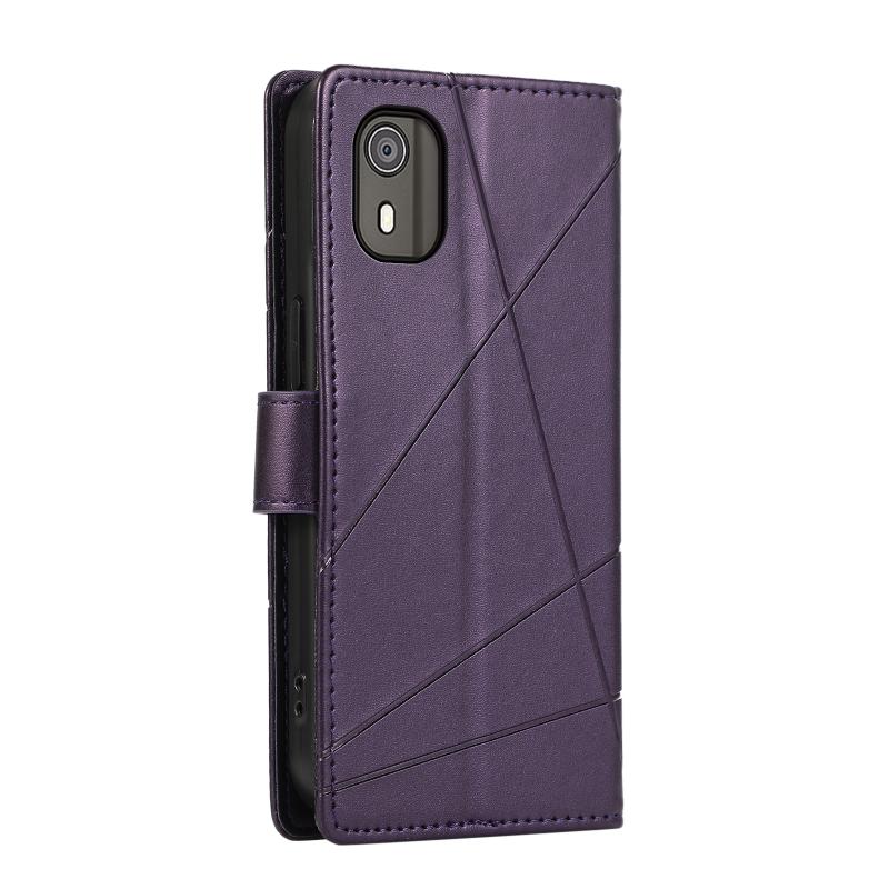 For Nokia C02 PU Genuine Leather Texture Embossed Line Phone Case(Purple)