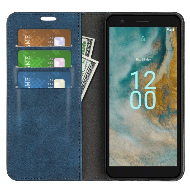 For Nokia C02 Retro-skin Magnetic Suction Leather Phone Case(Dark Blue)