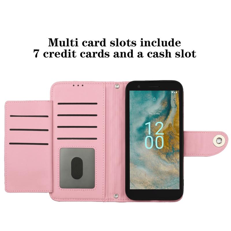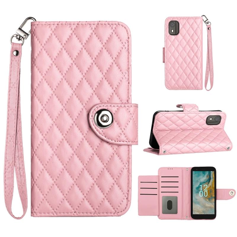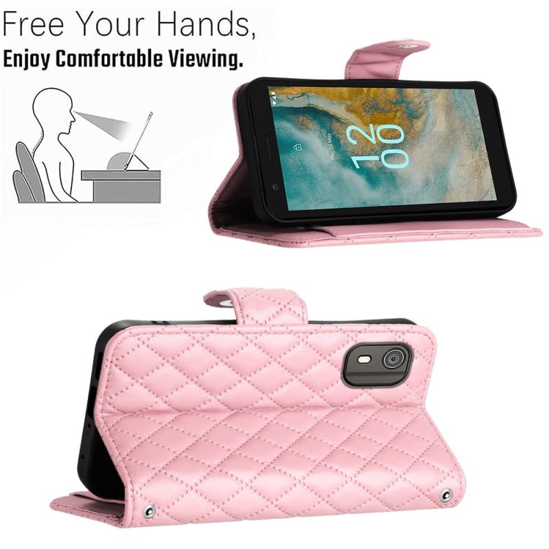For Nokia C02 Rhombic Texture Flip Leather Phone Case with Lanyard(Pink)