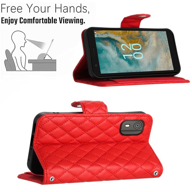 For Nokia C02 Rhombic Texture Flip Leather Phone Case with Lanyard(Red)