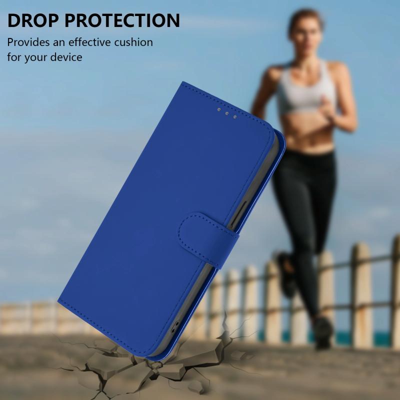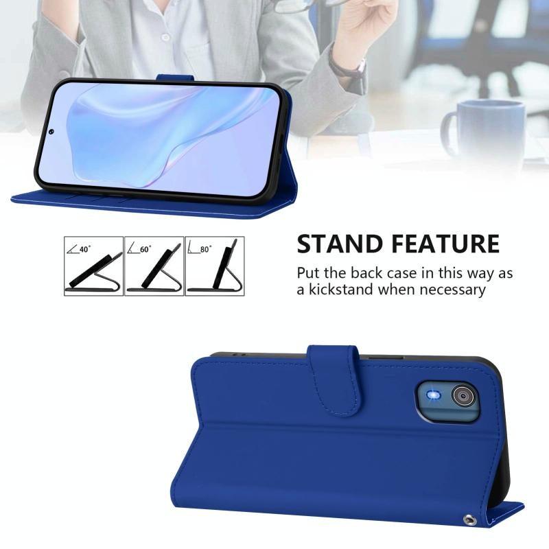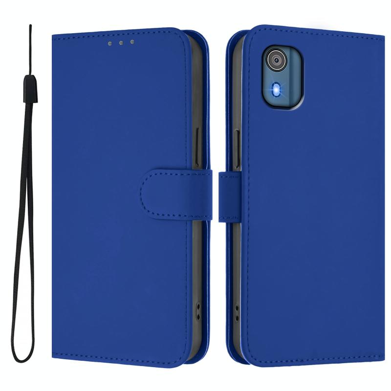 For Nokia C02 Skin Feel Solid Color Leather Phone Case with Lanyard(Dark Blue)