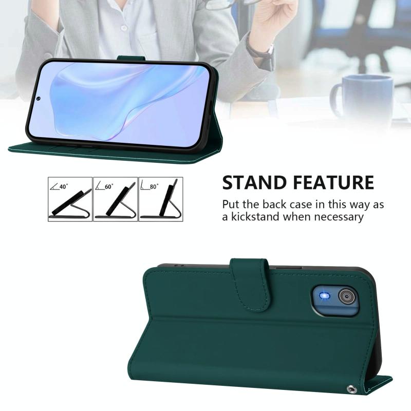 For Nokia C02 Skin Feel Solid Color Leather Phone Case with Lanyard(Dark Green)