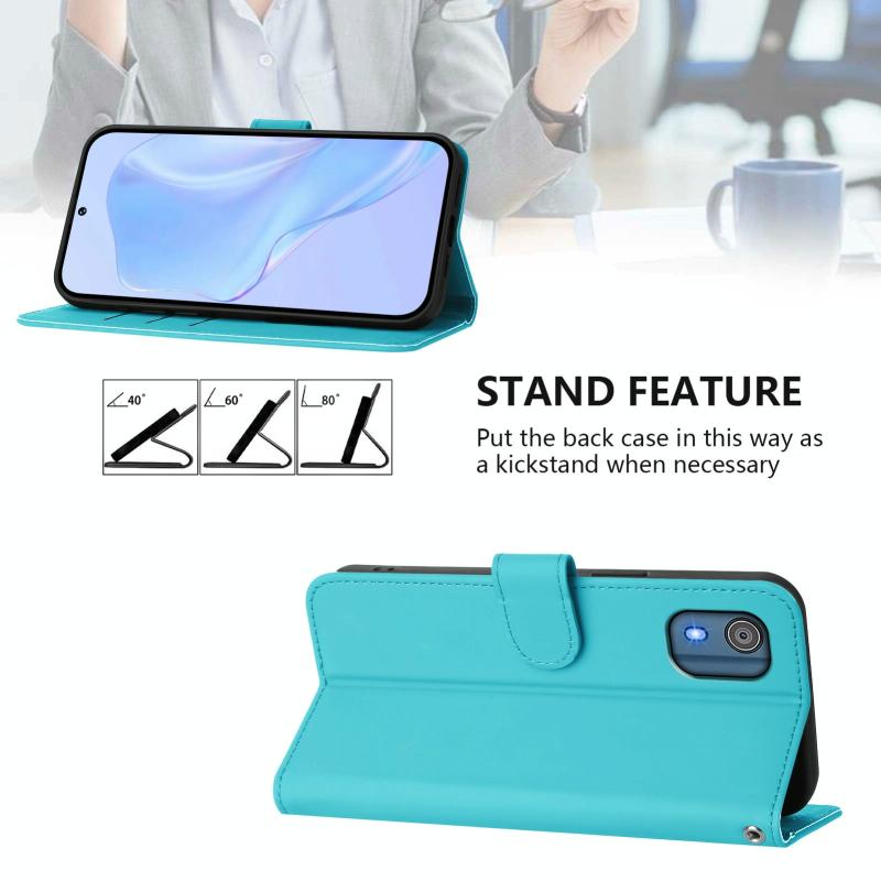 For Nokia C02 Skin Feel Solid Color Leather Phone Case with Lanyard(Lake Blue)