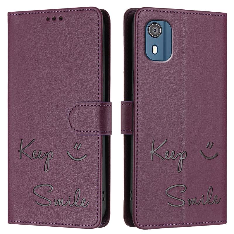 For Nokia C02 Smile Embossing RFID Leather Phone Case(Violet)