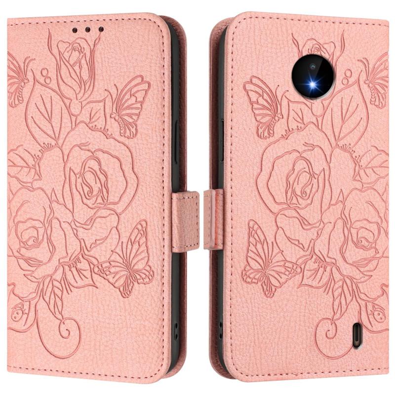For Nokia C10 / C20 Embossed Rose RFID Anti-theft Leather Phone Case(Pink)