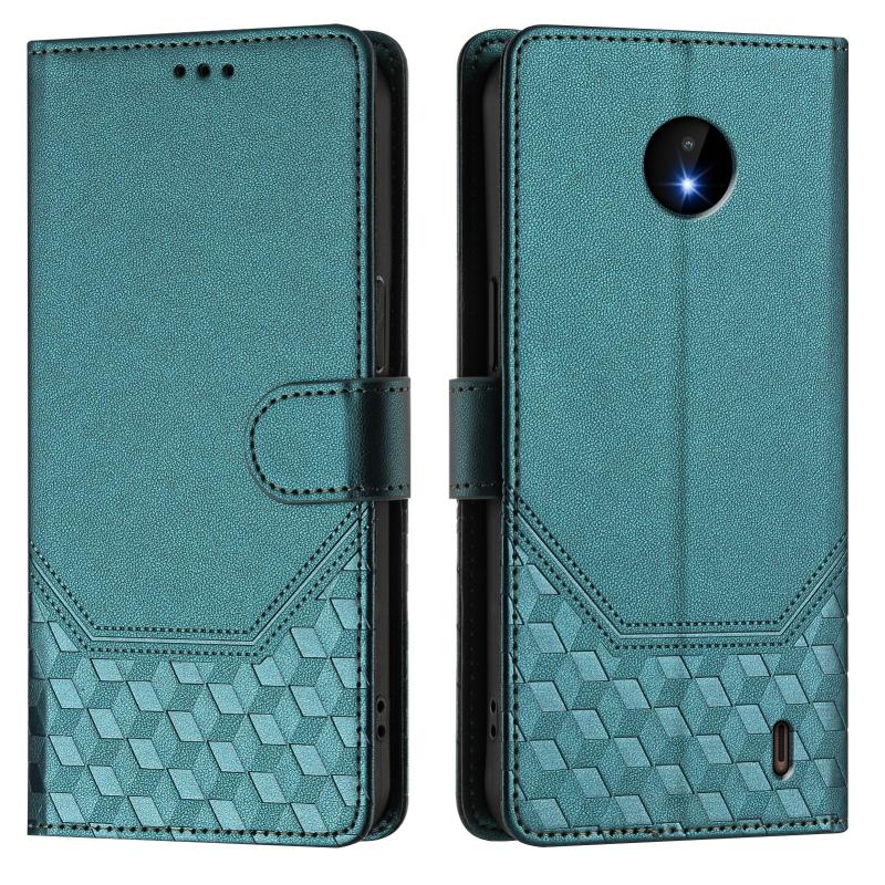 For Nokia C10 / C20 Honeycomb Embossing RFID Leather Phone Case(Peacock Green)