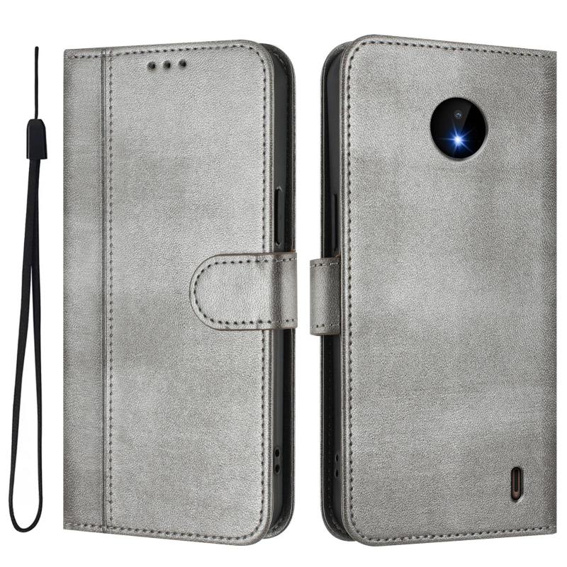 For Nokia C10 / C20 Line Splicing Buckle Retro Leather Phone Case(Grey)