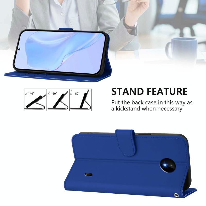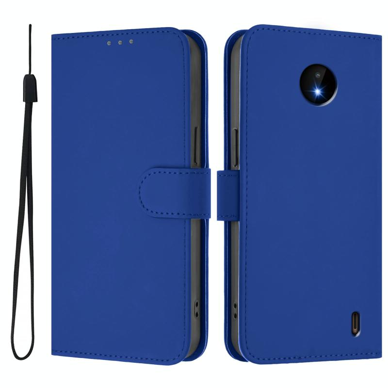 For Nokia C10 / C20 Skin Feel Solid Color Leather Phone Case with Lanyard(Dark Blue)