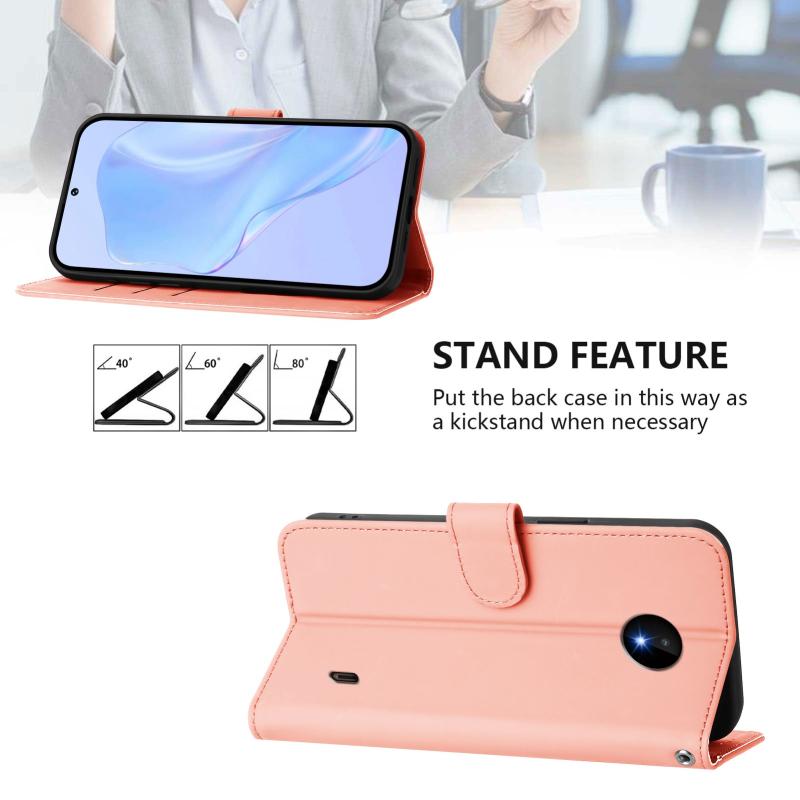 For Nokia C10 / C20 Skin Feel Solid Color Leather Phone Case with Lanyard(Pink)