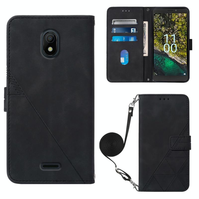 For Nokia C100 Crossbody 3D Embossed Flip Leather Phone Case(Black)