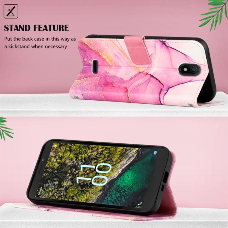 For Nokia C100 PT003 Marble Pattern Flip Leather Phone Case(Pink Purple Gold LS001)