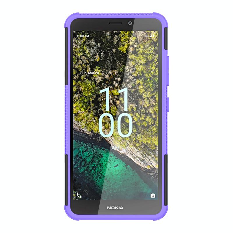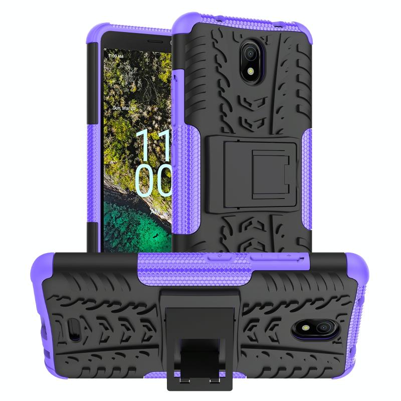 For Nokia C100 Tire Texture TPU + PC Phone Case with Holder(Purple)