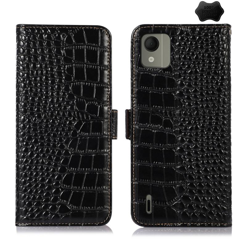For Nokia C110 Crocodile Top Layer Cowhide Leather Phone Case(Black)