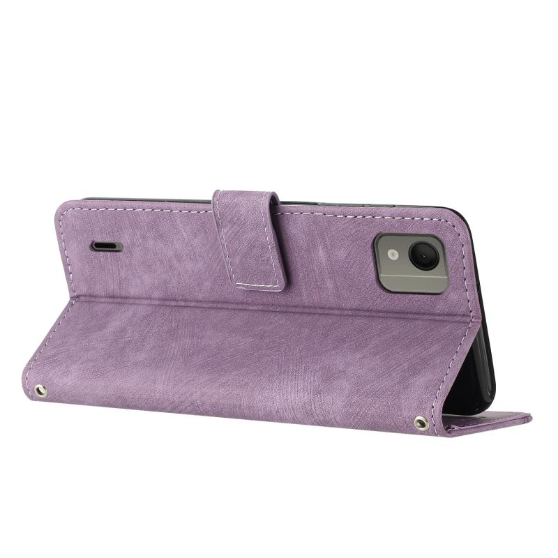 For Nokia C110 Skin Feel Stripe Pattern Leather Phone Case with Lanyard(Purple)