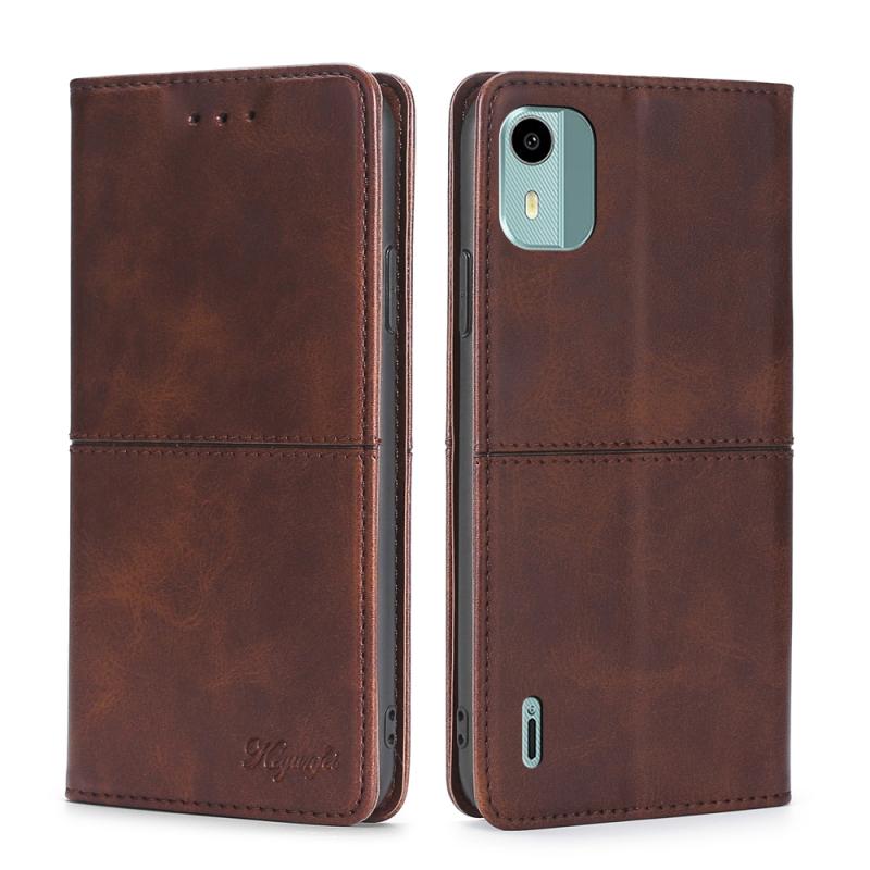 For Nokia C12 Cow Texture Magnetic Leather Phone Case(Dark Brown)