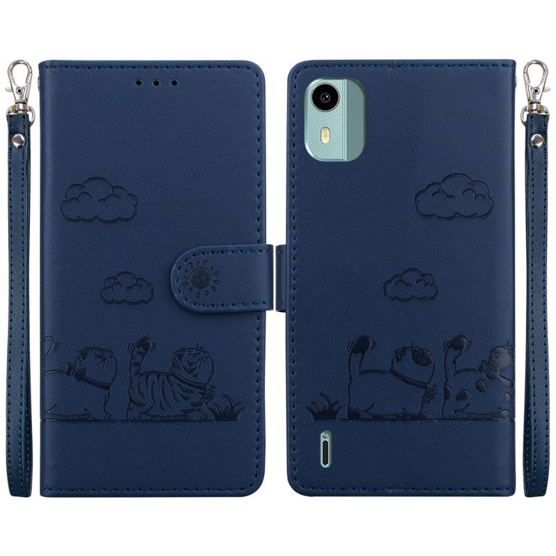 For Nokia C12 Cute Cats RFID Leather Phone Case(Blue)
