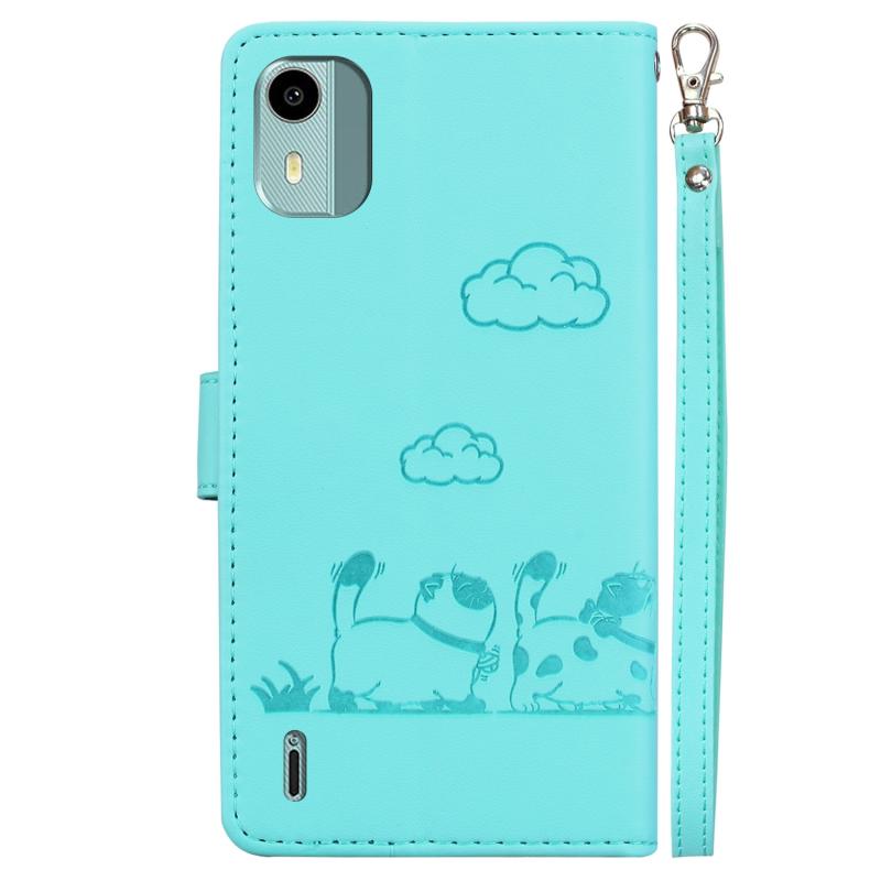 For Nokia C12 Cute Cats RFID Leather Phone Case(Green)
