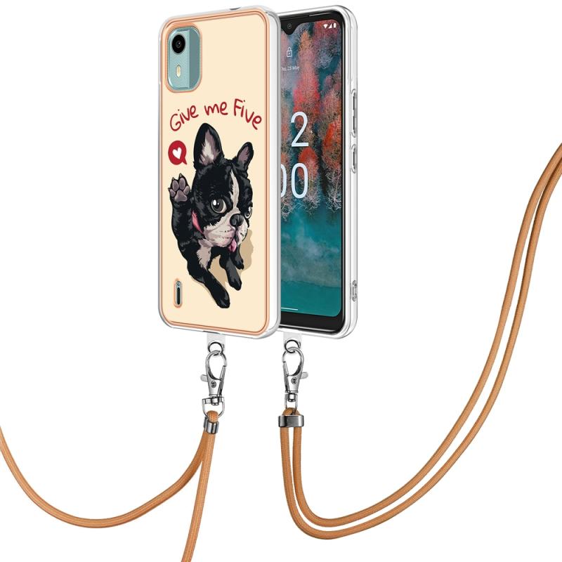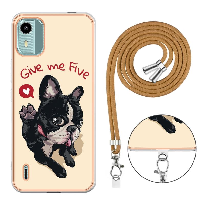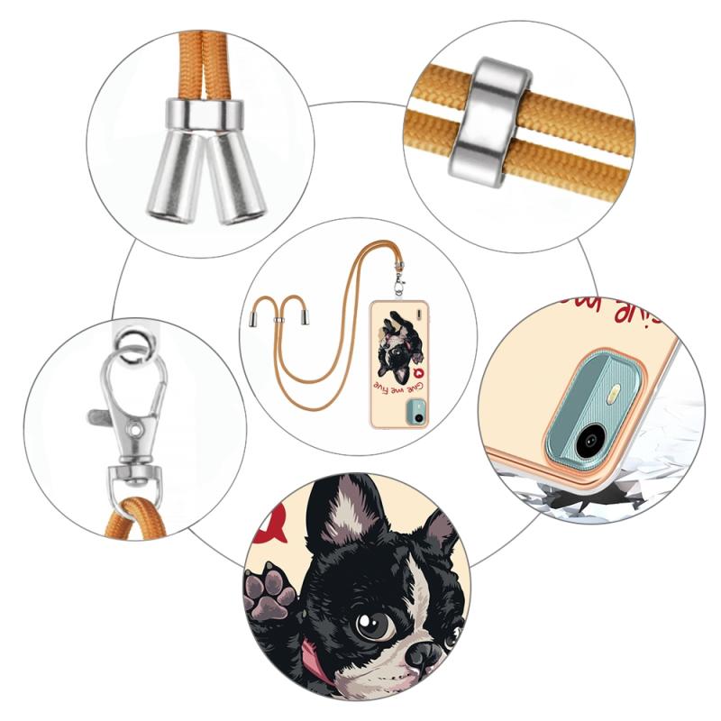 For Nokia C12 Electroplating Dual-side IMD Phone Case with Lanyard(Lucky Dog)