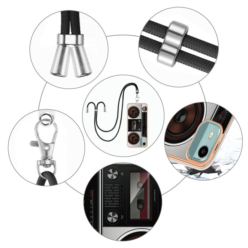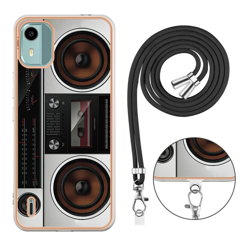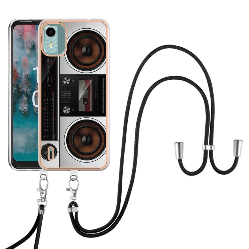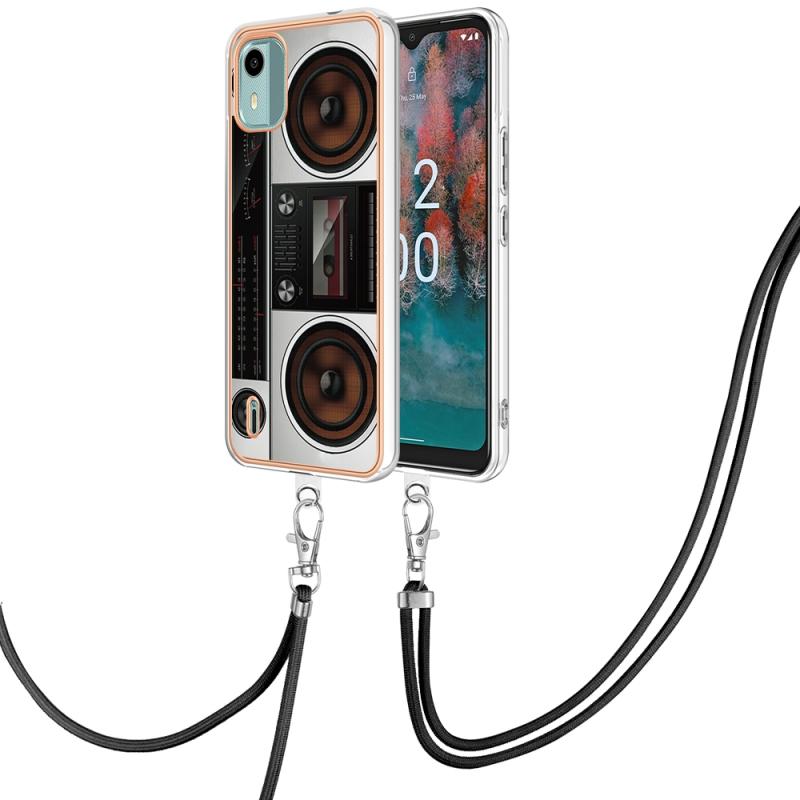 For Nokia C12 Electroplating Dual-side IMD Phone Case with Lanyard(Retro Radio)
