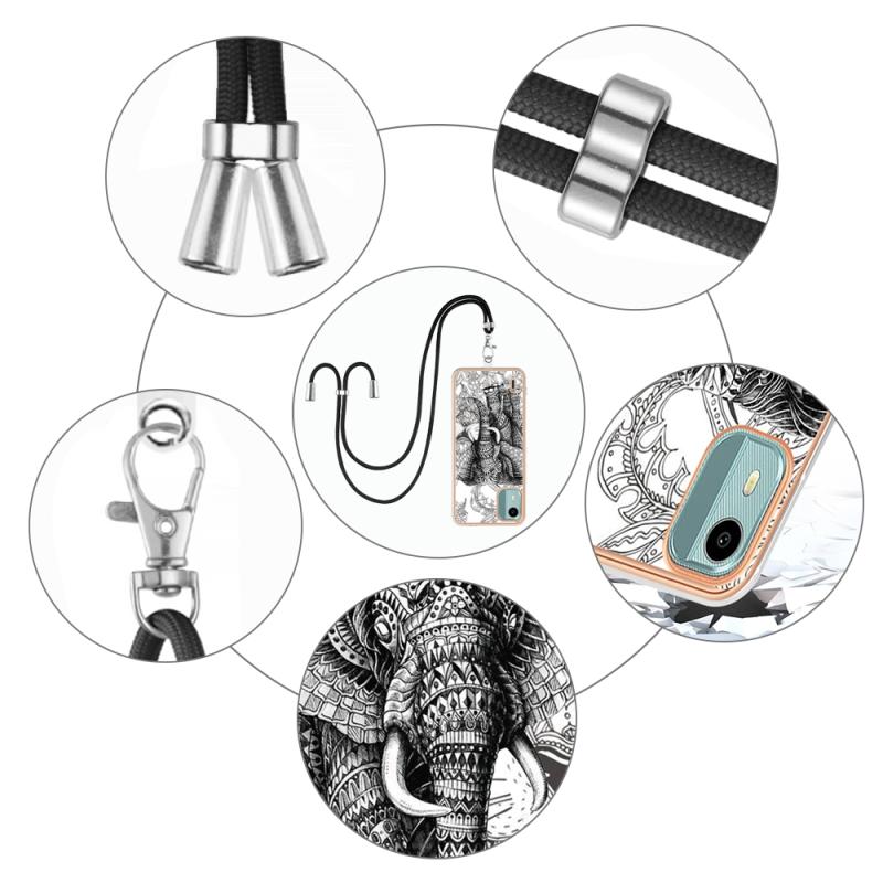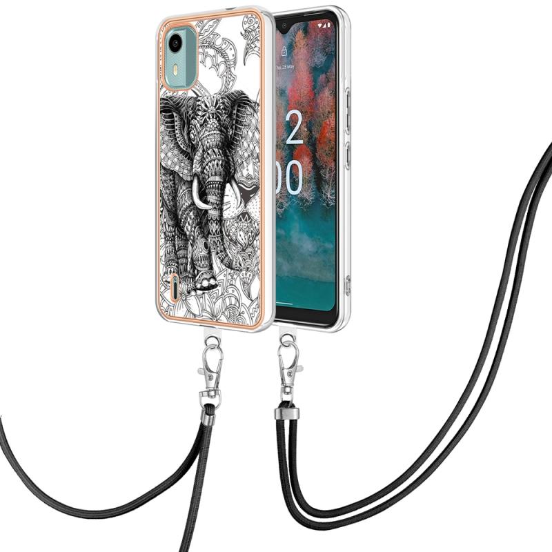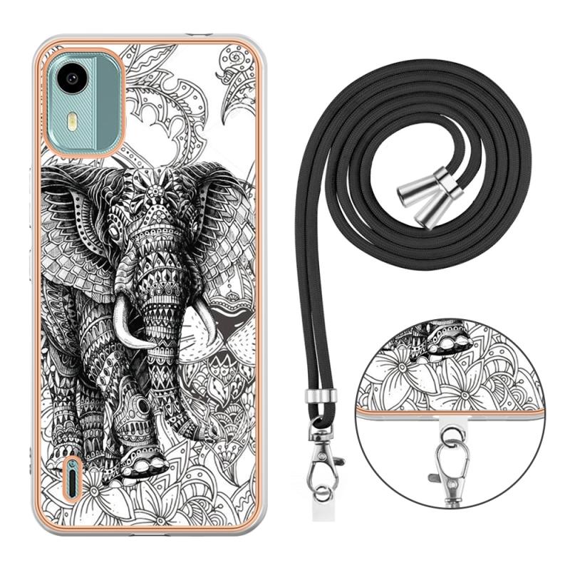 For Nokia C12 Electroplating Dual-side IMD Phone Case with Lanyard(Totem Elephant)