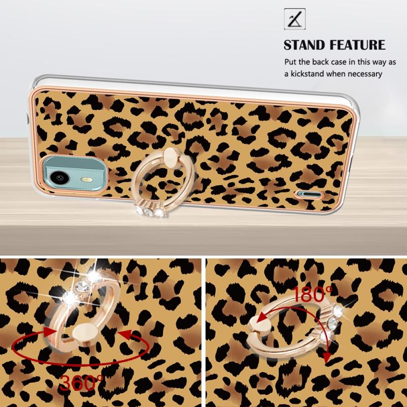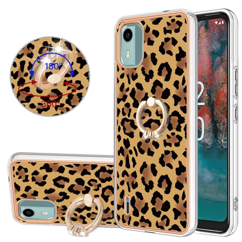 For Nokia C12 Electroplating Dual-side IMD Phone Case with Ring Holder(Leopard Print)