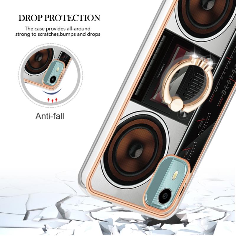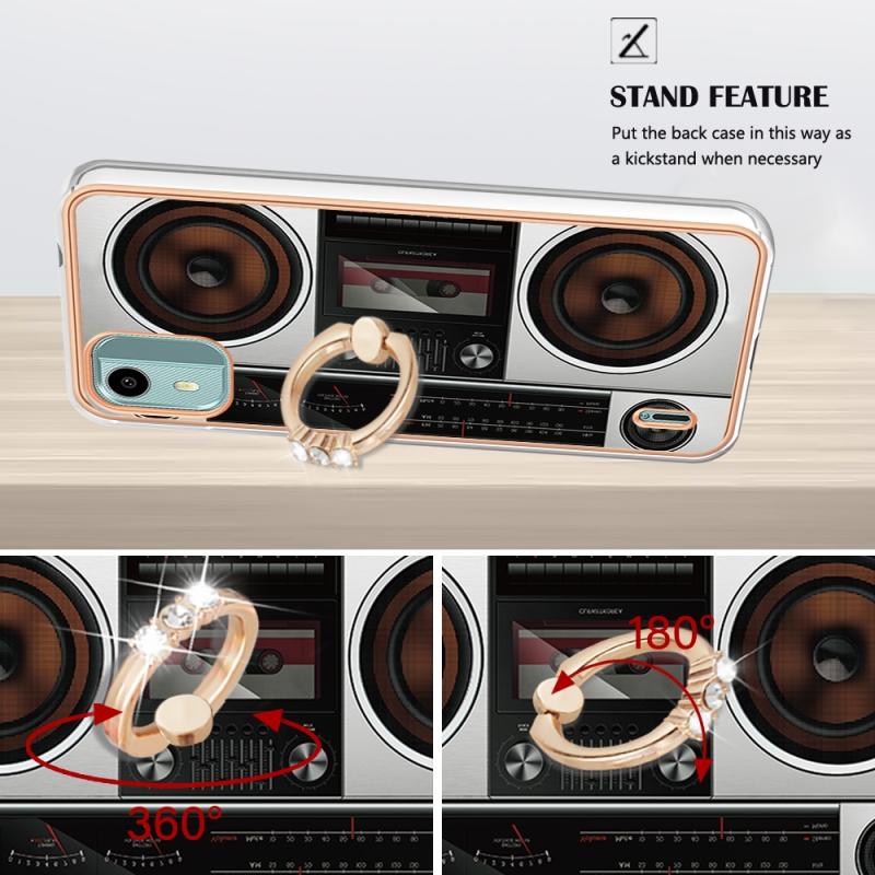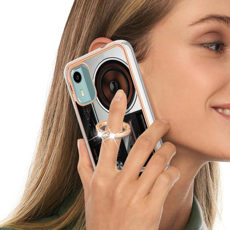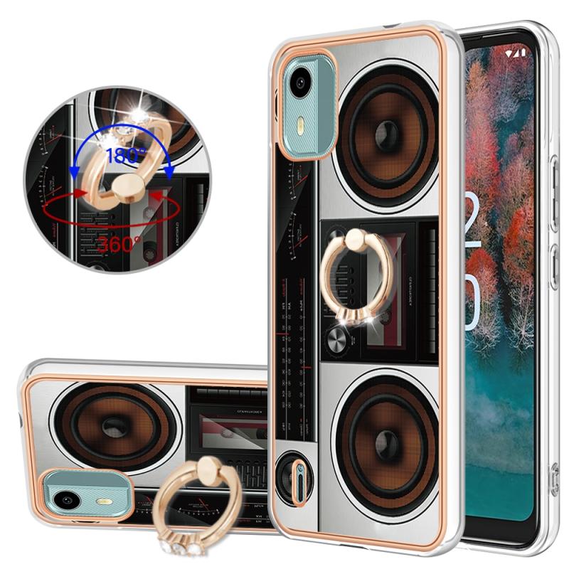 For Nokia C12 Electroplating Dual-side IMD Phone Case with Ring Holder(Retro Radio)