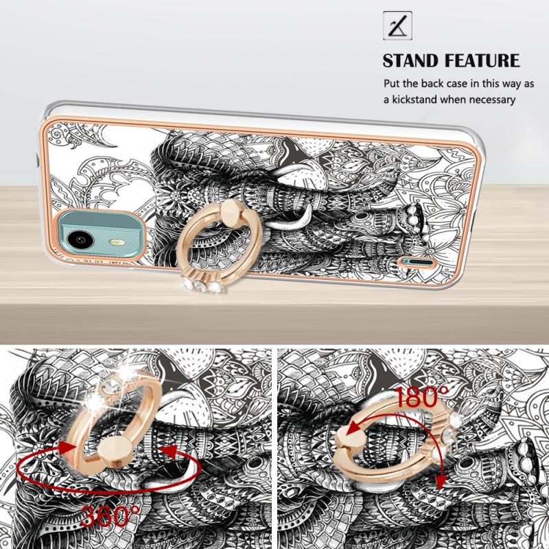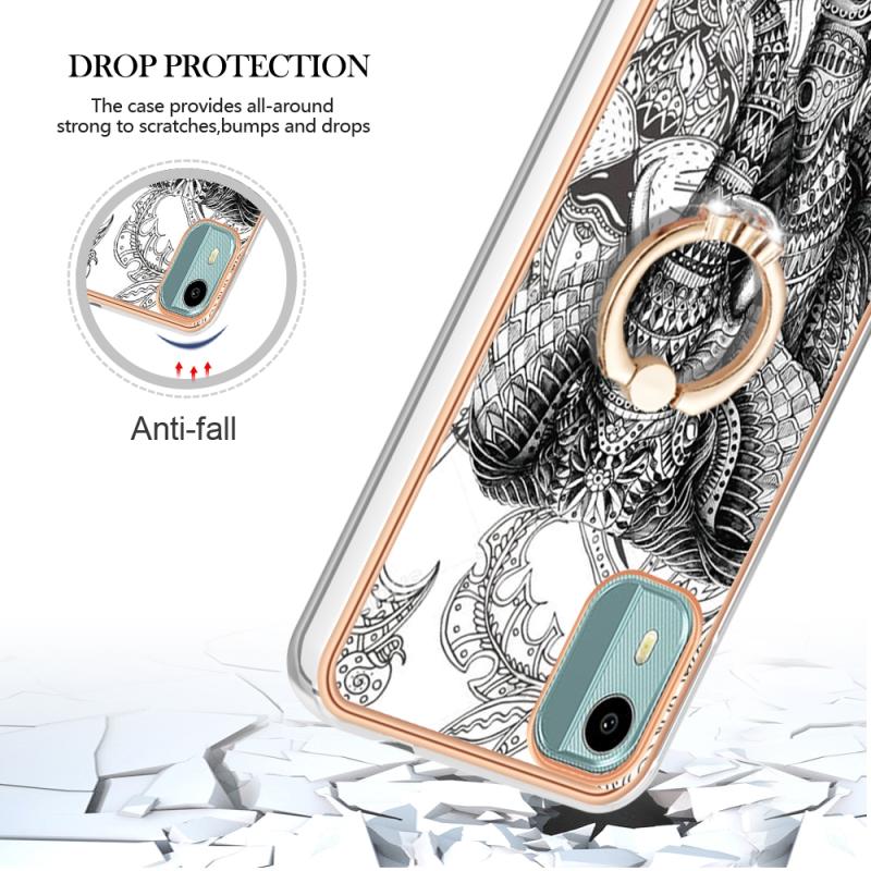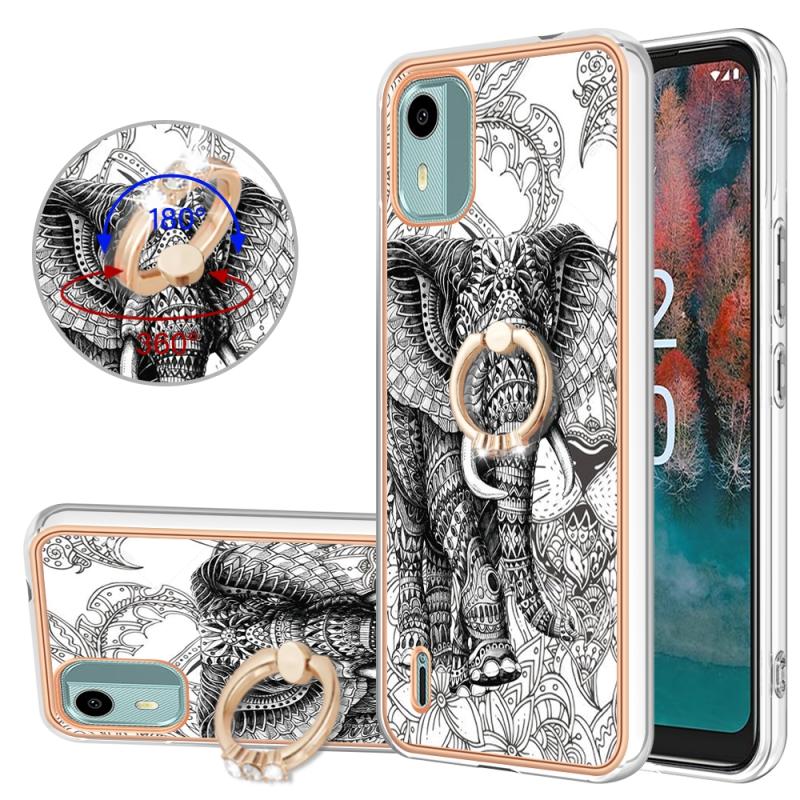 For Nokia C12 Electroplating Dual-side IMD Phone Case with Ring Holder(Totem Elephant)
