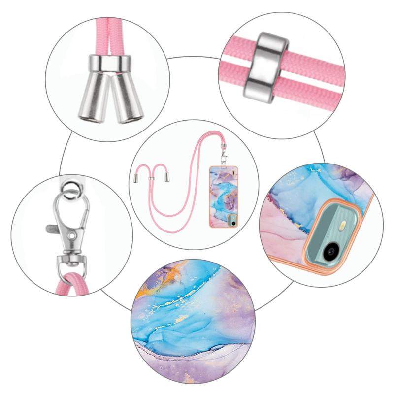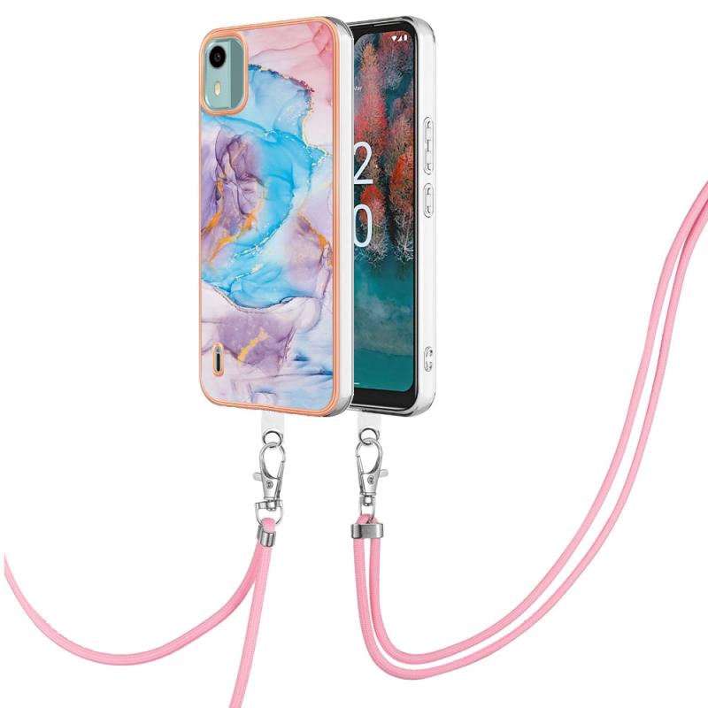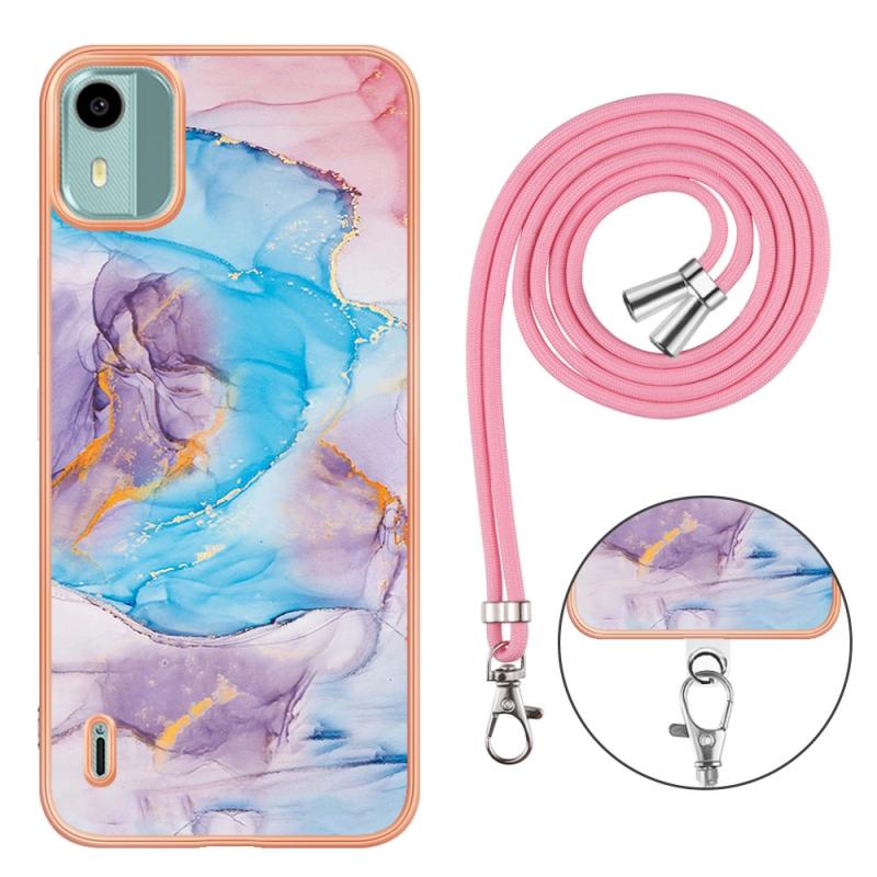 For Nokia C12 Electroplating IMD TPU Phone Case with Lanyard(Blue Marble)