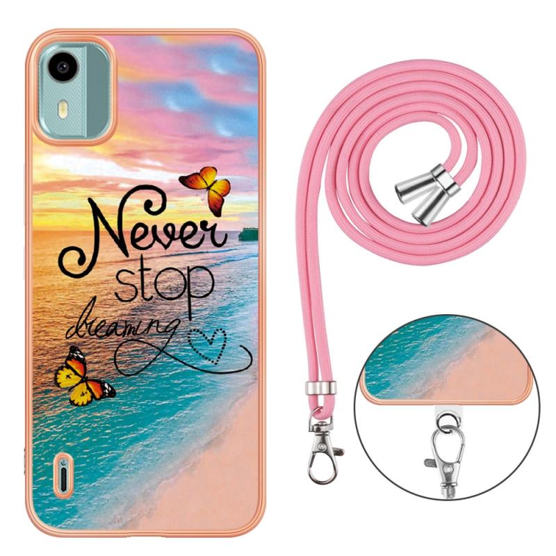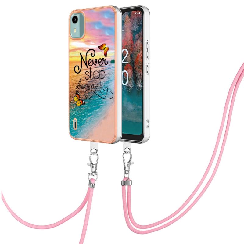 For Nokia C12 Electroplating IMD TPU Phone Case with Lanyard(Dream Butterfly)