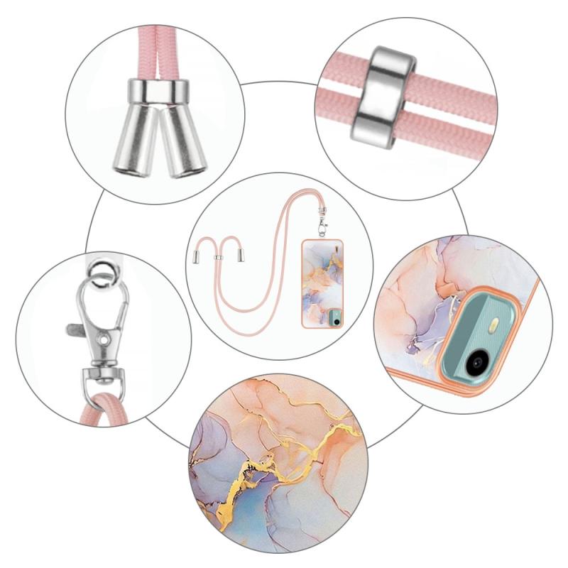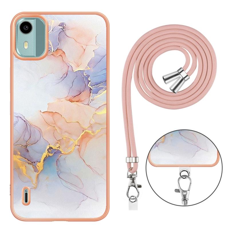 For Nokia C12 Electroplating IMD TPU Phone Case with Lanyard(White Marble)