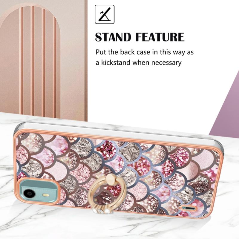 For Nokia C12 Electroplating IMD TPU Phone Case with Ring(Pink Scales)