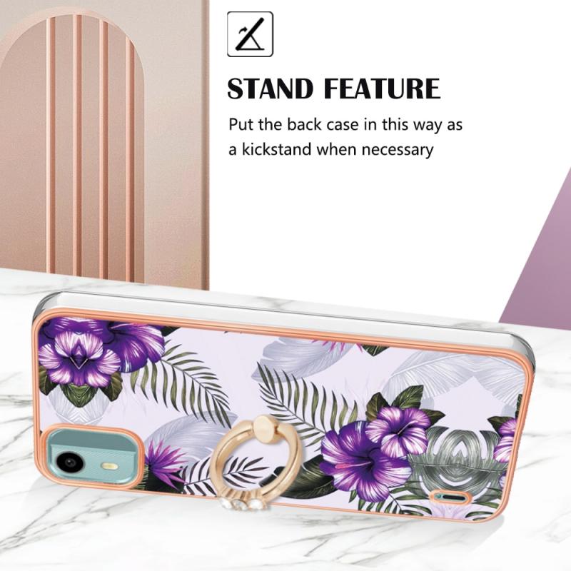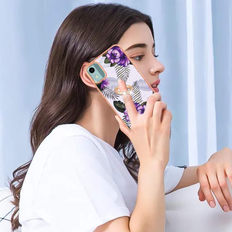For Nokia C12 Electroplating IMD TPU Phone Case with Ring(Purple Flower)
