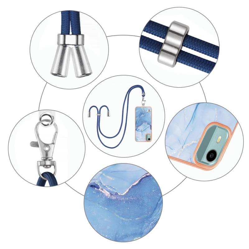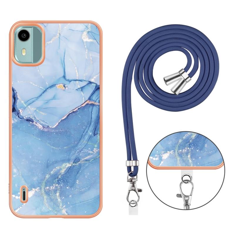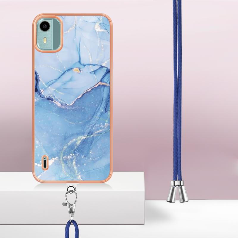 For Nokia C12 Electroplating Marble Dual-side IMD Phone Case with Lanyard(Blue 018)
