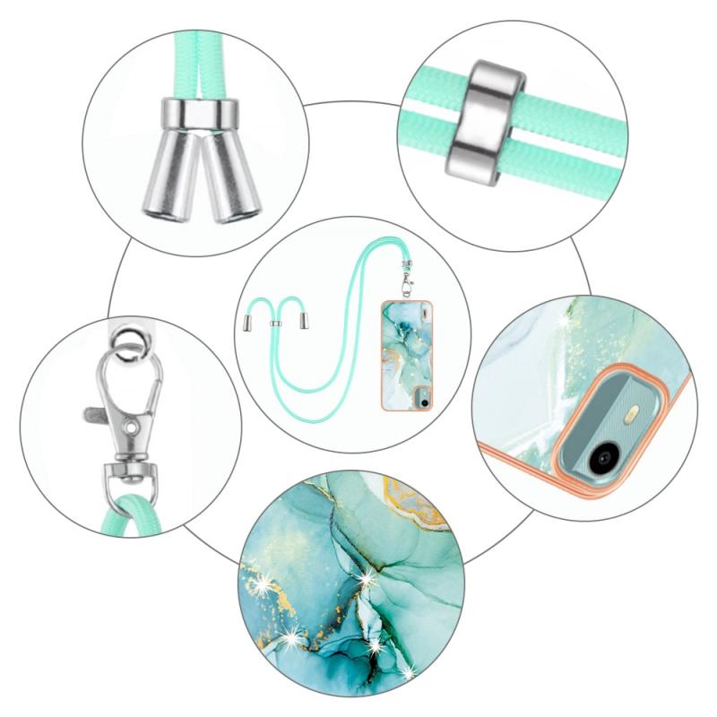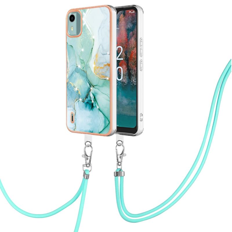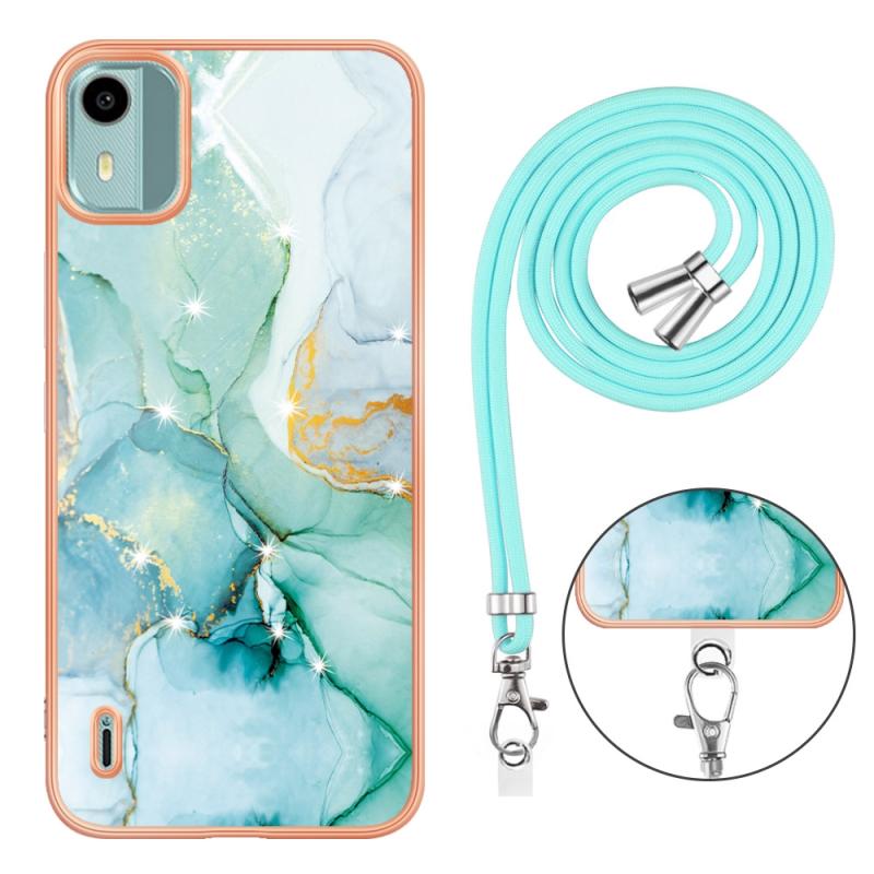 For Nokia C12 Electroplating Marble Dual-side IMD Phone Case with Lanyard(Green 003)