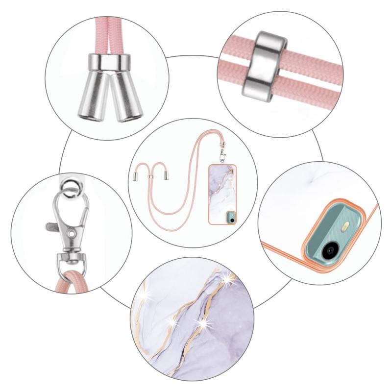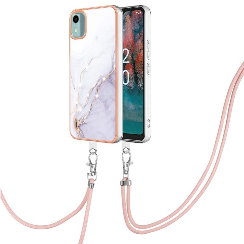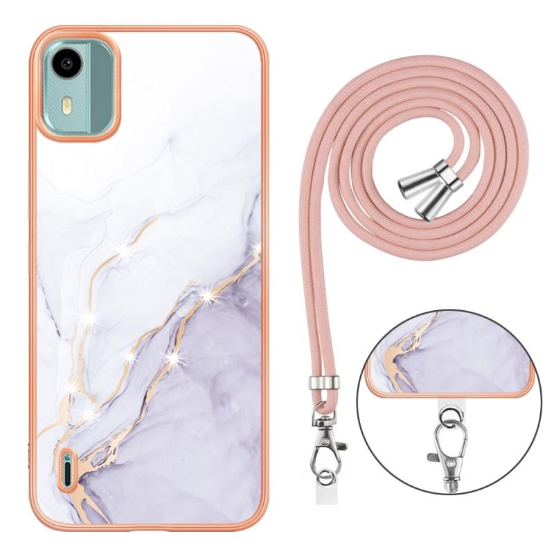 For Nokia C12 Electroplating Marble Dual-side IMD Phone Case with Lanyard(White 006)