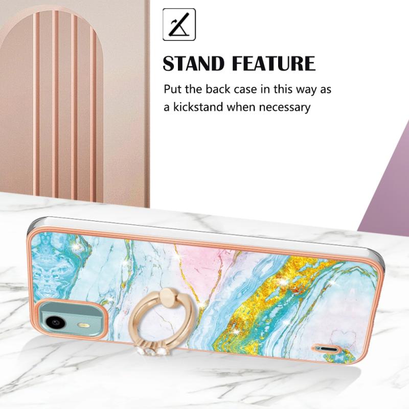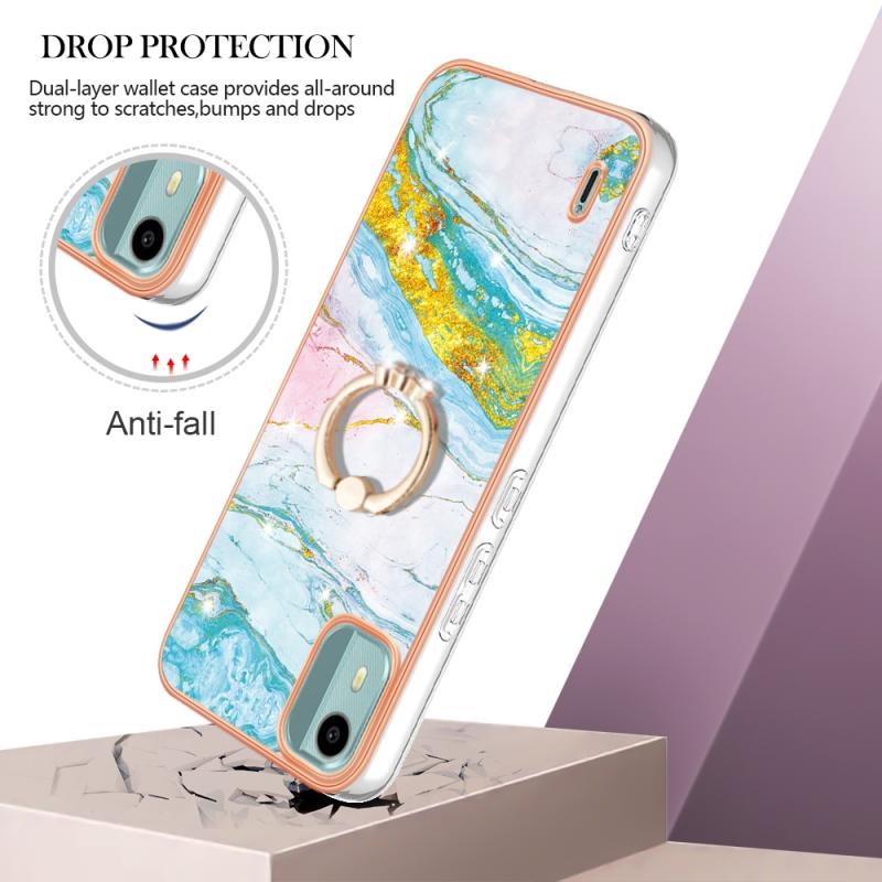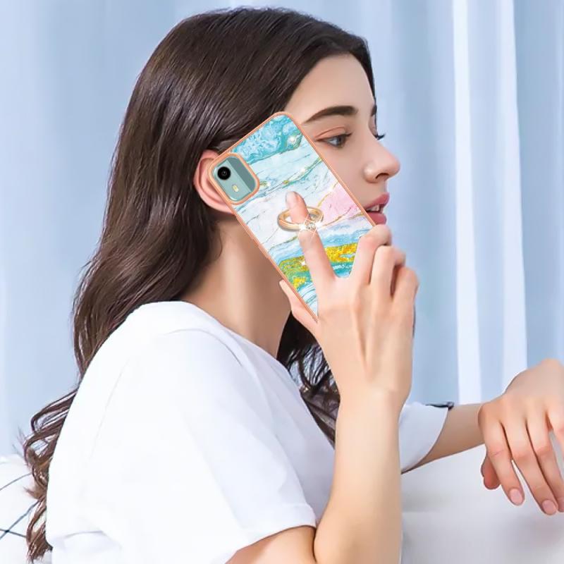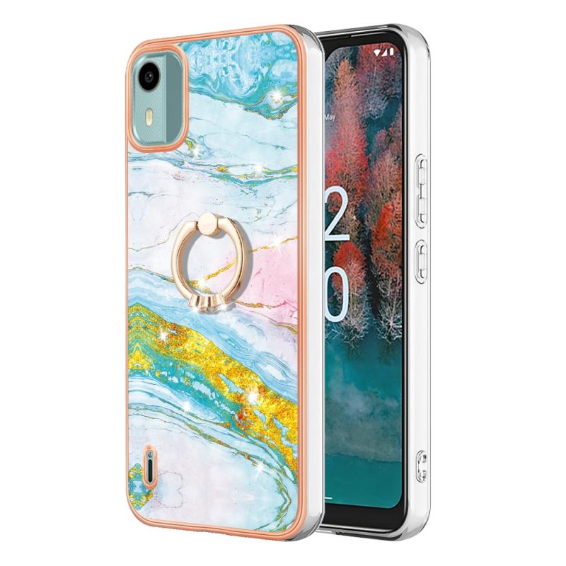 For Nokia C12 Electroplating Marble IMD TPU Phone Case with Ring Holder(Green 004)